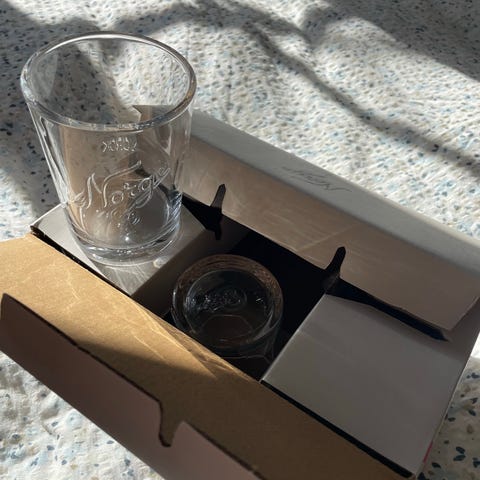 7 skøyteglass i designet Svalbard fra Hadeland Glassverk, med innrisset motiv fra noen av Redningsselskapets skøyter, tilbys interesserte kjøpere. Alle glassene er ubrukt og i original emballasje. De er merket «Coctail», men kan like gjerne brukes til andre formål.