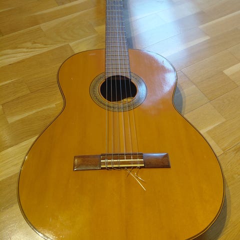 Yamaha C45 akustisk gitar. Klassisk gitar med nylonstrenger, egnet for nybegynnere og viderekomne. Tradisjonell design med naturlig trefinish.