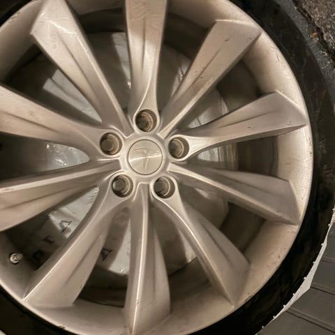 Tesla original felger 18t. Noe flassing rundt tesla merket og et par på felg. 4 stk