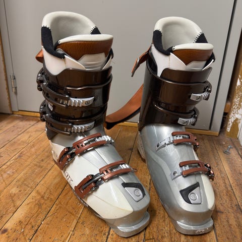 Rossignol alpinsko str Mondo 21,5 (str. 34). Støvel lengde 255 mm. Pent brukte og i god stand. Kr 250.