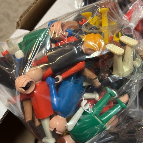 Ca 100 duplo figurer voksene og barn. +++ masse tilbehør. Vekt på alt ca 2,4 kilo. Selges 460,- Sender post.