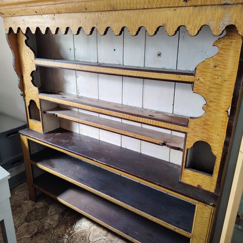 Antikk skap med dekorative utskjæringer - vurderes solgt.