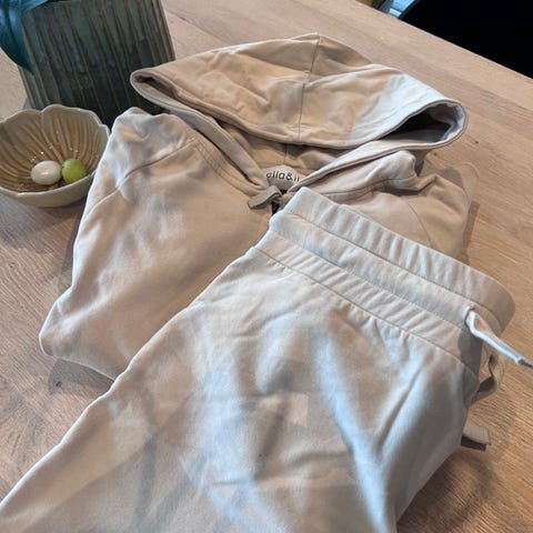 ella&il Grå Bomull Hettejakke i størrelse S for kvinner. Jakken har hette og glidelås i front. Materialet er bomull, og plagget har en komfortabel passform. Sett selges samlet for 1200kr.