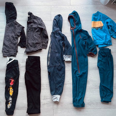2 joggesett fra KappAhl og 1 fra Cubus. Noen flekker på spiderman joggesett - se bilde. Hull på ene kneet på joggesett i fra KappAhl.