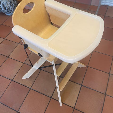 IKEA ANTILOP barnestol i hvit farge med sikkerhetssele . Stolen har et enkelt design og er egnet for små barn. Den har mål på 90 cm i høyde, 60 cm i bredde og 66 cm i dybde.