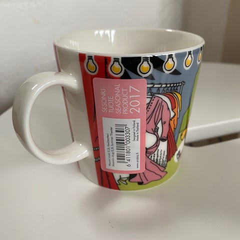Ny mummikopp med etikett.