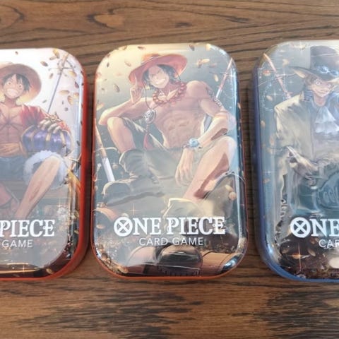 Det er 3 ulike tins i ulike farger og design, en for hver av brødrene. Det er totalt 4 av hver type i en booster display.