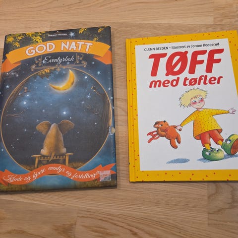 2 barnebøker som kan kjøpes enkeltvis (kr 45,- per stk) eller samlet (kr 80,-). Godnatt-eventyr med 14 klassiske eventyr - hardcover-utgave. Stjerneknapper i vinterlys av Torkild Moen - hardcover-utgave. Begge bøkene er pent brukt.
