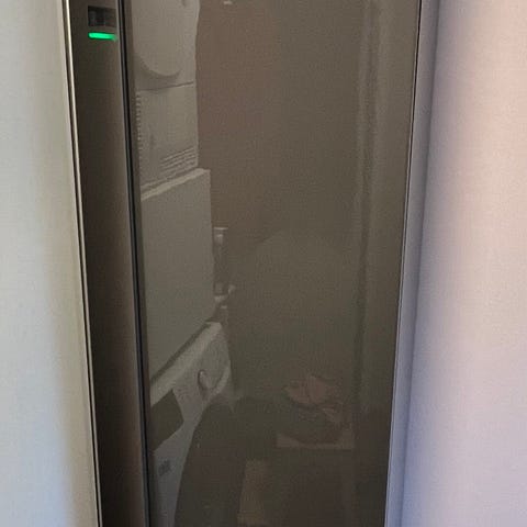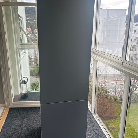 Her er de to skapene stablet oppå hverandre. Hvert av de to skapene har 2 dører, side om side.