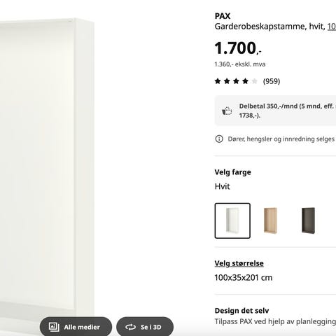 Pax skap fra IKEA