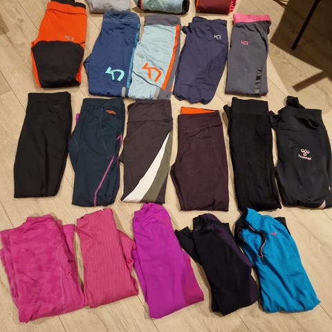 Joggebukser fra kari traa og nike, jakke merke nike, treningsgenser nike, treningstights fra kari traa, tynn ullgenser fra devold.