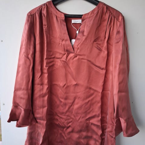 Behagelig kjole med vid god passform i satengaktig stoff.
