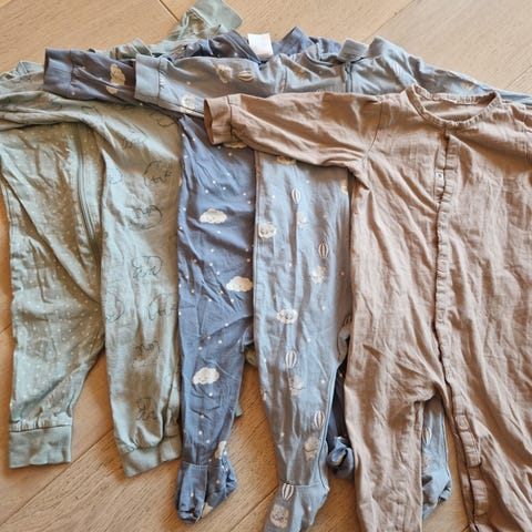 To pysjamas fra name it. Sparkedrakter er i størrelse 68 og laget av 100 % økologisk bomull. Glidelås foran.