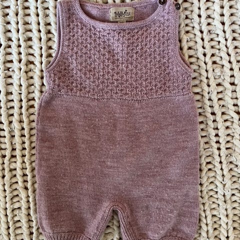 Kjole og romper i kløfri ull. Strikket i samme farge. Tilnærmet ubrukt. Romper fra MeMini i cord. Brukt en gang.