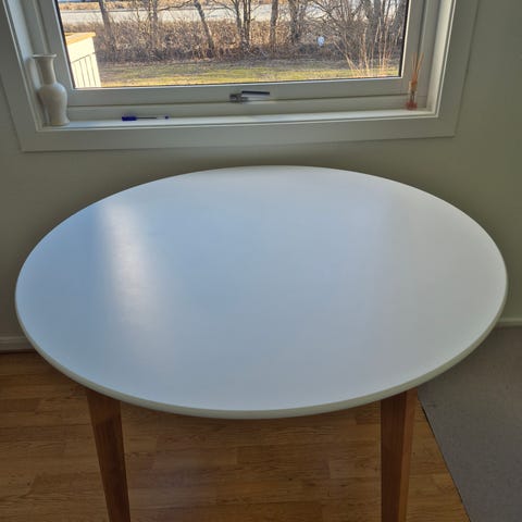 Spisebord til salgs. Godt brukt men fortsatt fint med noen bruksmerker. Nypris 1499,-