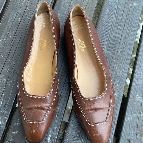 Brukt én gang, og de passer perfekt. Jeg er ikke så glad i hælen. De ser helt nye ut. Prisen falt fra 640 euro til en mye lavere pris.