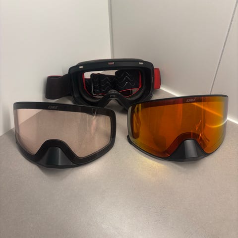 Oakley Airbrake goggles med fire utskiftbare linser i forskjellige farger.
