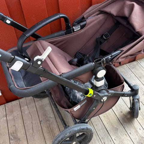 Vi selger vår fine Bugaboo Cameleon 3 med svart tekstil, babydel og sittedel. Vanlige små forhjul samt større terrenghjul er inkludert.