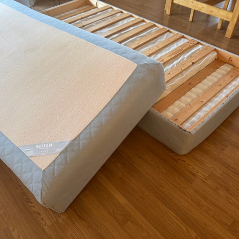 Sengen er skikkelig myk og god.