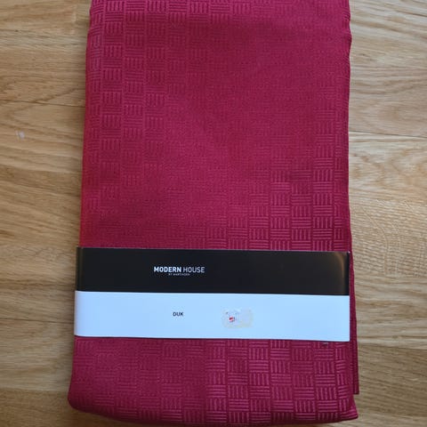 Jysk BLOME duk med målene 140x240 cm i grå farge. Laget av tekstilmateriale med et geometrisk mønster. Egnet for beskyttelse av bordflater og dekorasjon. 2 stk 100,- kr pr stk en helt ny, den andre kun brukt en gang.