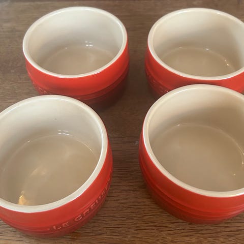 Le Creuset hjerteformede ramekin selges da de ikke er i bruk.