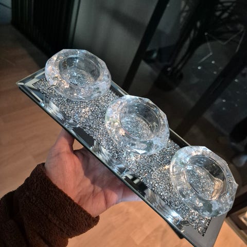 Nydelig lysestake i sølv med bling krystaller