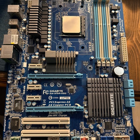 Gigabyte GA-F2A78M-DS2 hovedkort med CPU og kjøler