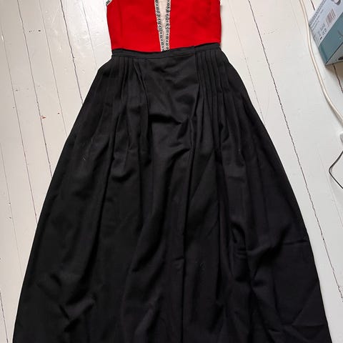 Selger min pent brukte Bjørgvinbunad. Den er str S/M, og jeg er ca 163 cm høy. Den kan fint sys ut eller inn.
