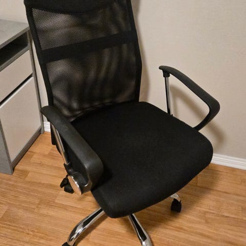 Kontorstol i svart farge. Kontorstolen har justerbar setedybde, ryggstøttehøyde og armlenevinkel, og er designet for å gi god ergonomisk støtte. Se bilder for justeringsmuligheter. Passer til bruk på kontor for både menn og kvinner. Dette er veldig god stol. Selges kr. 1500,- eller høystbydende.