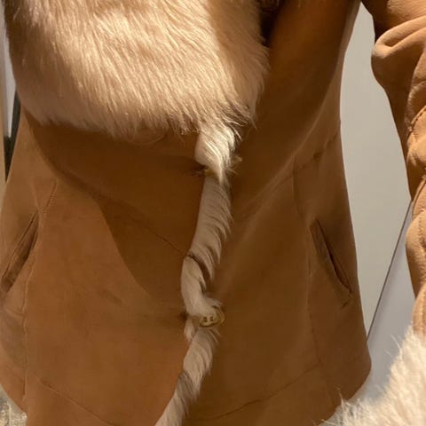 Selger en jakke fra saueskinn. Produksjon Stavanger Polarpels.