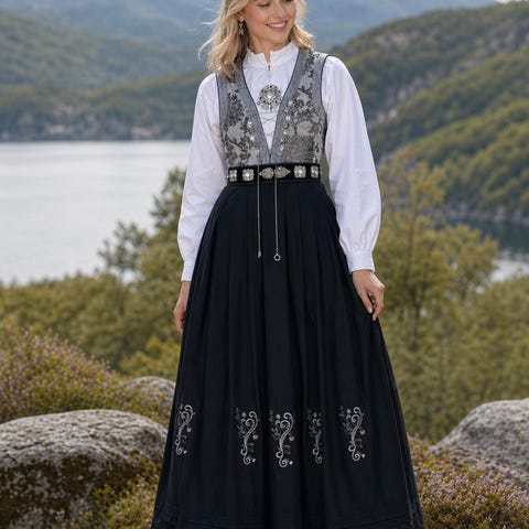 Følger med hvit skjorte, stakk, veske, oppbevaringspose, mansjettknapper til ermene og komplett sølvbelte✨