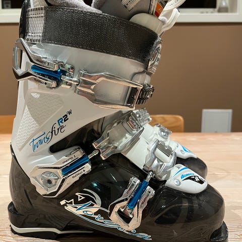 Nordica GPX 1.0 alpinstøvler i svart med blå detaljer. Utstyrt med 4 spenner for justering. Str 25.0-25.5