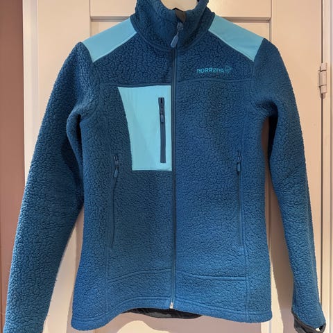 Norrøna Andre jakker i størrelse S for kvinner, laget av polyamid materiale. Jakken er blå/ grå farge med dempet orange detaljer
