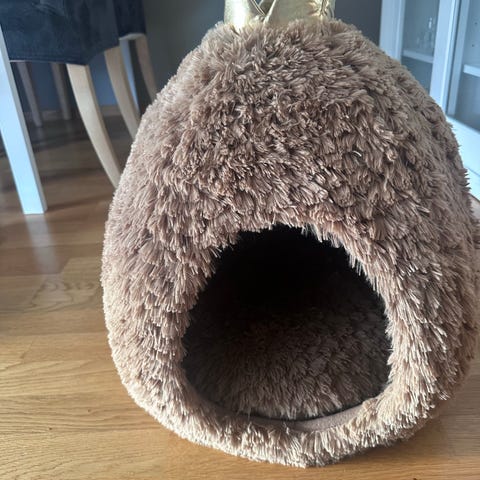 Stor kattedo selges. Er en sprekk som ble fikset med limpistol.