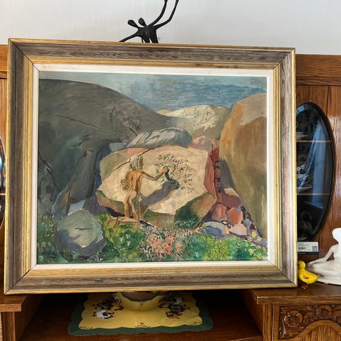 To signerte lito med motiv av en ulv og en ugle.