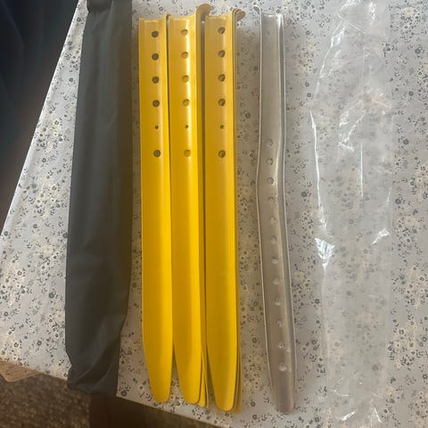 - Vekt, reparasjonssett: 150 gram (Stoff, nål, tråd, stangerme, stangsegment)