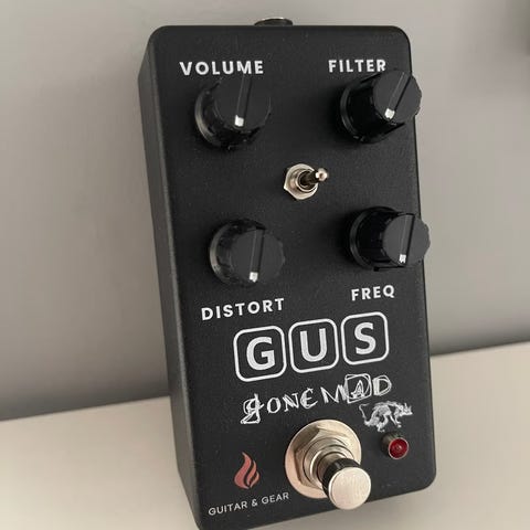 Enkel fuzzpedal med vreng- og volum-kontroll.