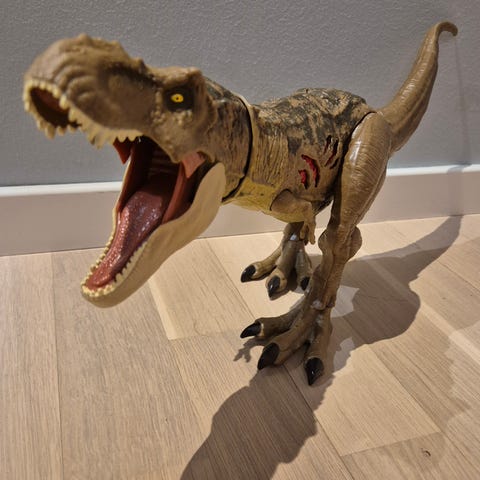 En lekedinosaur som stort sett har logget i en kasse selges. Ingen bruksmerker som jeg kan se.