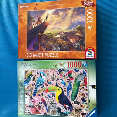 Cobble Hill puslespill med 500 brikker. Motiv med fargerike høns og gårdsmiljø. Leveres med plakat for enklere pussling.