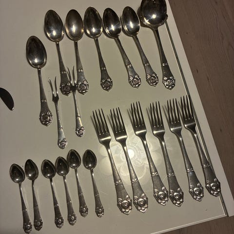 sølvtøy sølvplett plett nysølv alpakka alpacca samlerobjekt bestikk ryddesalg borddekking bordstyling vintage romantisk granny style core grandmacore antikk skje skjeer suppeskje gaffel gafler