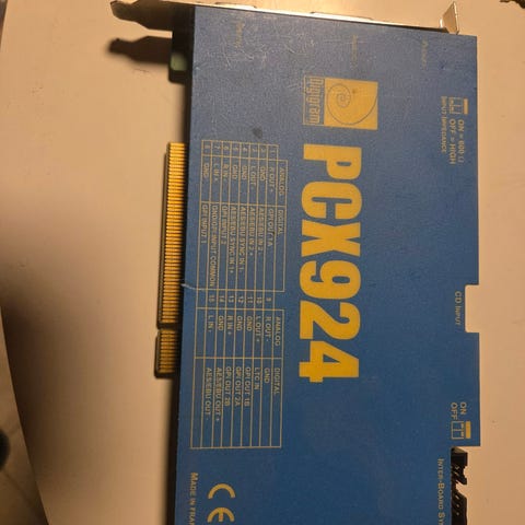 Profesjonelt PCX22-lydkort i studiokvalitet med flere tilkoblingsmuligheter for lydinngang og -utgang.
