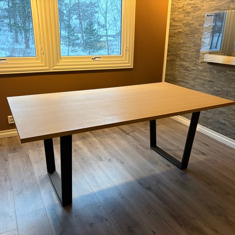 Bordet passer godt som arbeidsbord, spisebord, hobbybord eller i et verksted.