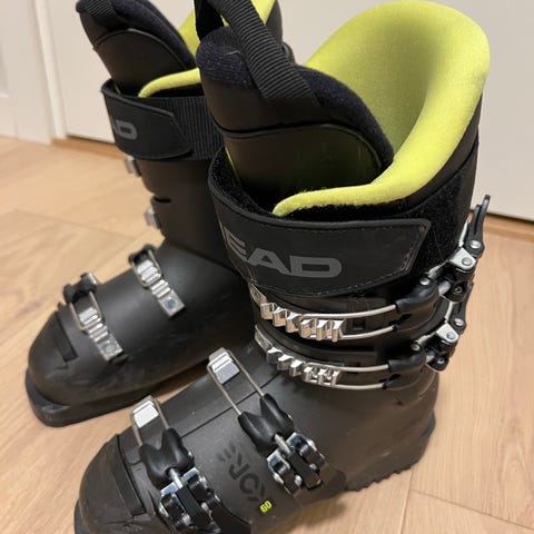 Fischer RC4 60 alpinstøvler i svart farge, størrelse 295. Støvlene har fire spenner og er designet for alpinski.