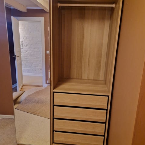 Velholdt PAX garderobe med. God løsning inni. Hentes i 1. etasje. Pris kan diskuteres ved en hurtig handel.