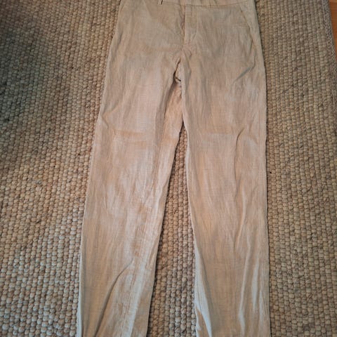 Mørkeblå/svart linbukse i 100% lin fra H&M. Str XL, lommer på begge sider. Rynkete på bildet, men går nok vekk etter vask☺️