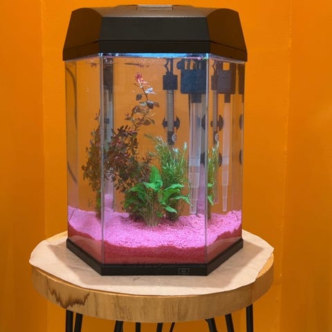 Kun akvariet og lys har enn verdi på rundt 6000kr. LED er dimmbare og kan justere fargespekter.