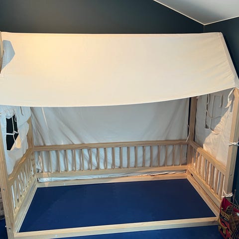 Hvit juniorseng, kjøpt på Barnas Hus.