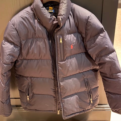 En veldig fin jakke til vinteren. Holder deg god og varm. Størrelsen står som L (12/14år). Nypris er 3500. Eneste bruksmerker er at lappen på siste bilde holder på å falle av, men det er ikke synlig når den er i bruk.