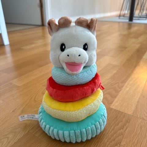 Kommer som et sett med 3 designet bokser, 2 glatte kuler og 3 knirkende teksturerte kuler.