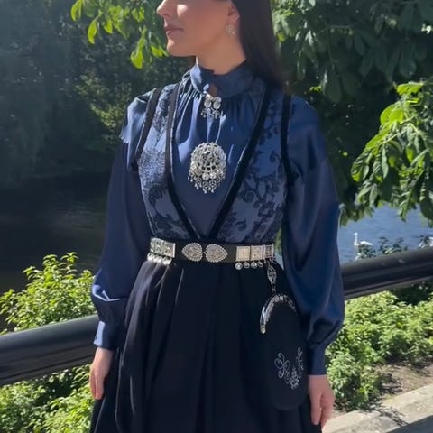 Følger med hvit skjorte, stakk, veske, cape, oppbevaringspose, mansjettknapper til ermene og komplett sølvbelte og maljer med trekkskjede som vist på nest siste bilde✨